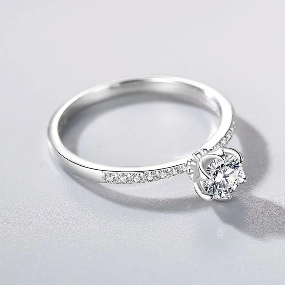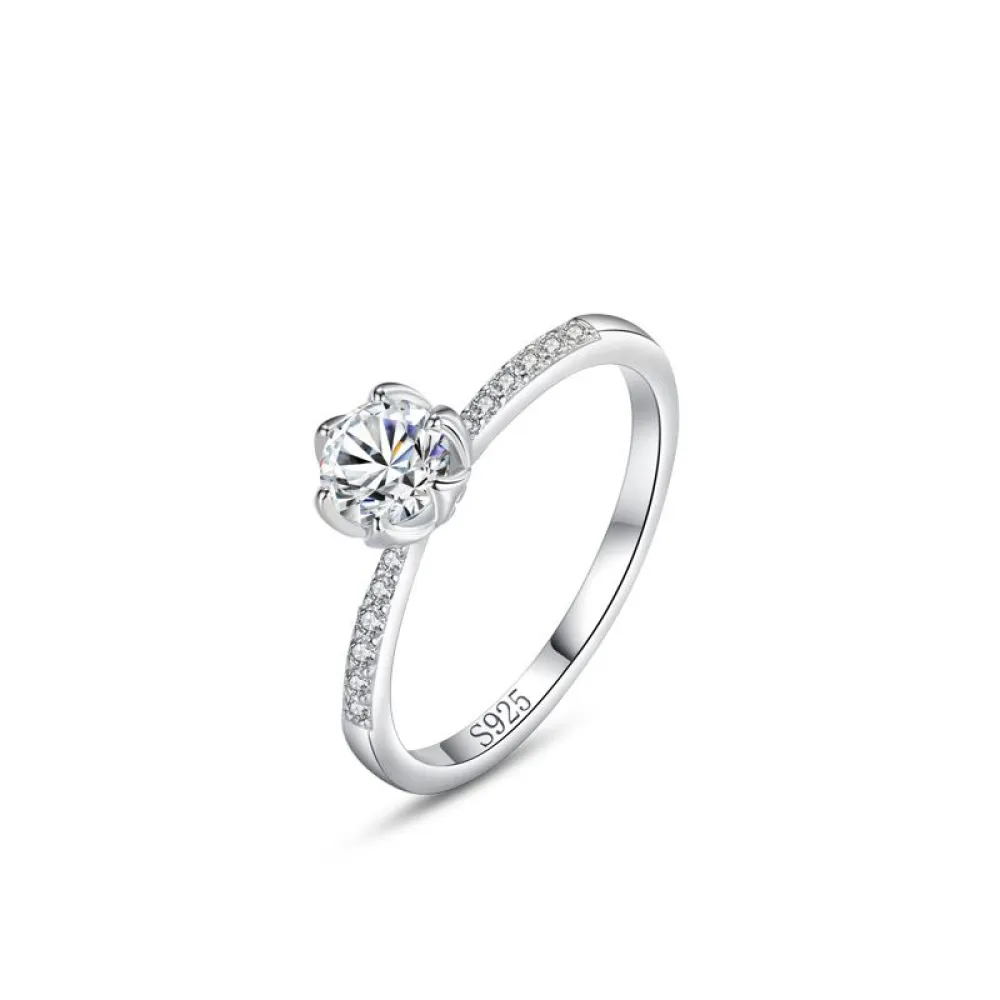 • Serti Pétales de Rose : La pierre centrale n'est pas simplement posée, elle est enveloppée par des courbes d'argent massif formant une corolle délicate, protégeant la pierre tout en ajoutant un volume romantique.