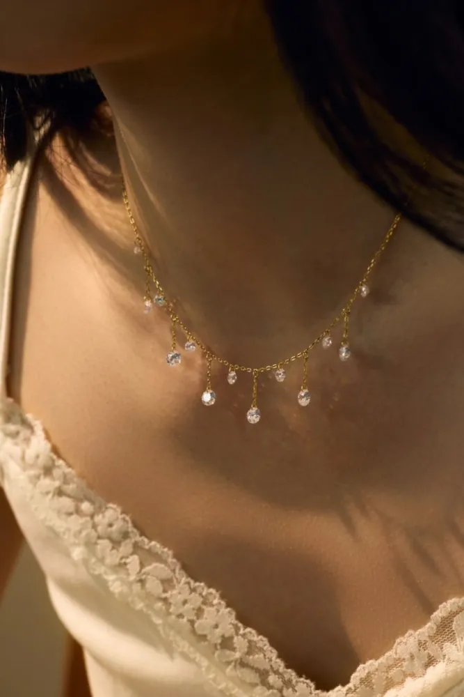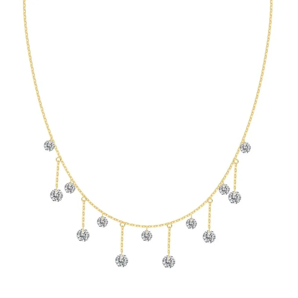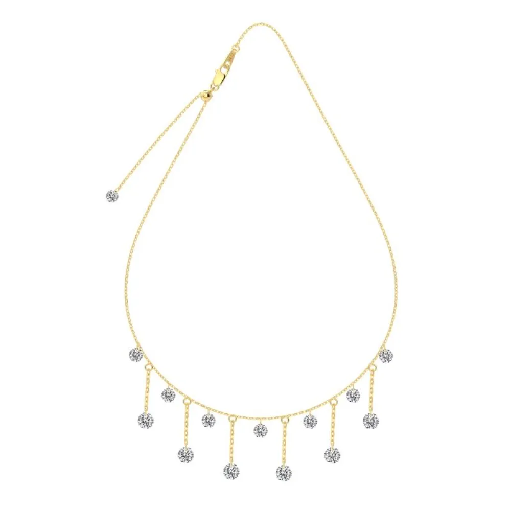 Une cascade de lumière à votre cou. Ce collier d’une finesse exceptionnelle est une véritable pièce de joaillerie moderne, conçue pour sublimer le port de tête avec un mouvement fluide et gracieux. Inspiré par la magie d'une nuit étoilée, il habille votre décolleté d'un scintillement continu et irrésistible.